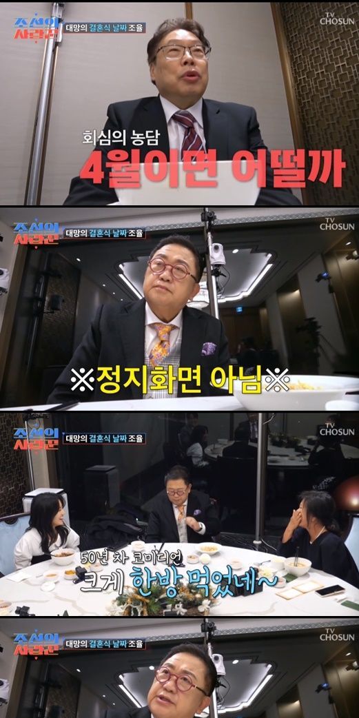 이용식은 "그러면 5월이 어떨까 생각한다. 딱 중간으로 4월 말이 어떤지"라며 유머감각을 발휘했다.