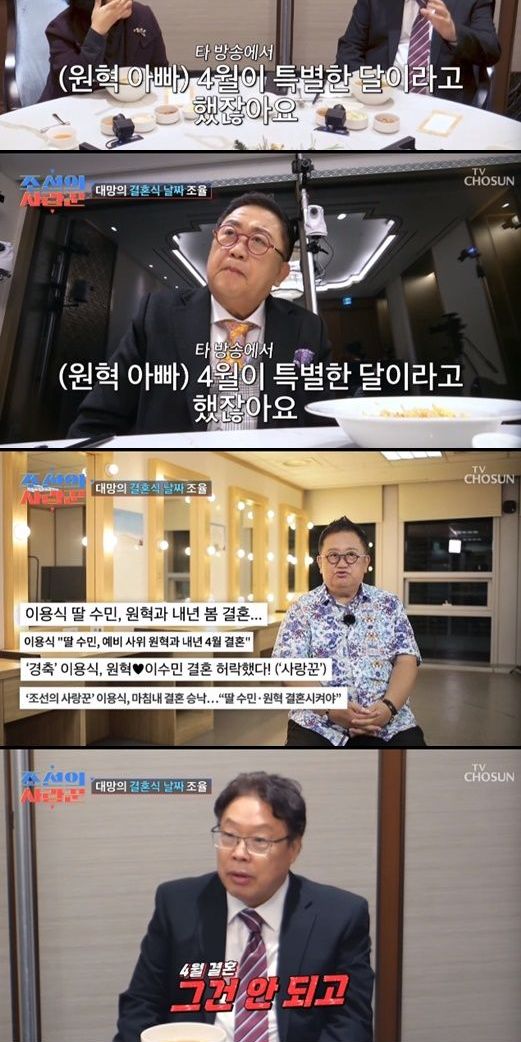 15일 방송한 TV CHOSUN 예능 ‘조선의 사랑꾼'에서 코미디언 이용식 딸 이수민과 이수민의 남자친구 원혁 가족의 상견례가 담겼다.