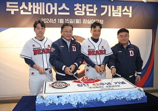 두산은 15일 서울 잠실야구장 식당에서 창단기념식을 개최하고 프런트, 선수단, 코칭스태프 상견례를 진행했다. 고영섭 두산 구단 대표이사를 비롯해 이승엽 감독, 김태룡 단장 등이 참석해 2024 시즌 선전을 다짐했다.