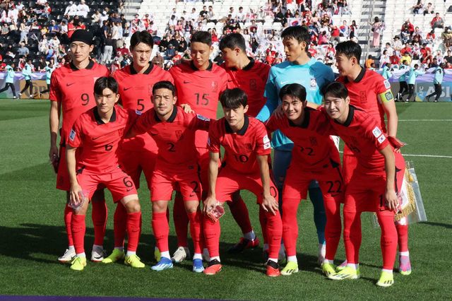 대한민국 축구대표팀 베스트 일레븐이 15일(현지시간) 카타르 도하 자심 빈 하마드 스타디움에서 열린 2023 아시아축구연맹(AFC) 카타르 아시안컵 조별리그 E조 대한민국과 바레인의 경기에서 기념촬영을 하고 있다. / 뉴스1