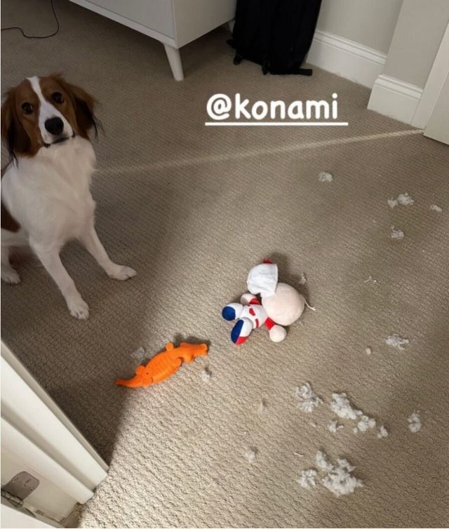 대기실에서 기다리던 데코핑이 오타니가 없던 사이 코나미 사의 마스코트 인형을 물어뜯은 거다. 오타니는 모자가 벗겨진 인형을 들고 데코핑을 혼내는 모습까지 함께 SNS에 게시했다.