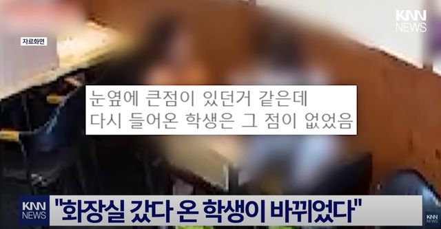 또한 처음에 앉아있던 학생은 눈 옆에 큰 점이 있었지만, 다시 들어온 학생은 그 점이 없었다.