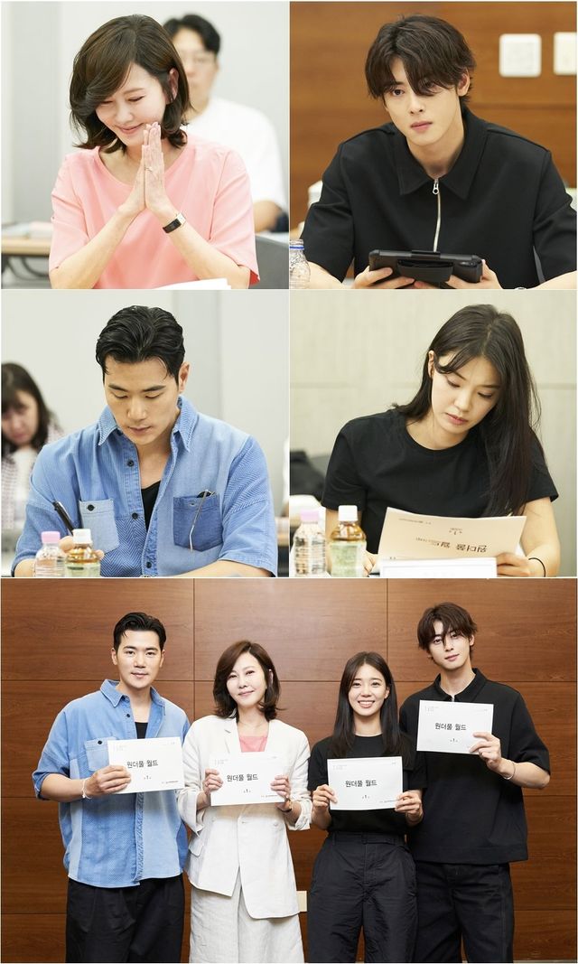 이 가운데 ‘원더풀 월드’의 첫 대본리딩 현장이 공개돼 관심이 집중된다. 대본리딩에는 이승영 감독과 김지은 작가를 비롯해 김남주(은수현 역), 차은우(권선율 역), 김강우(강수호 역), 임세미(한유리 역), 박혁권(김준 역), 길해연(정명희 역), 차수연(윤혜금 역), 오만석(권지웅 역), 강명주(김은민 역), 진건우(강태호 역), 양혜지(홍수진 역), 김우현(용구 역), 임지섭(권민혁 역), 이준(강건우 역) 등 빈틈없는 연기력을 자랑하는 연기자들이 총출동해 첫 호흡을 맞췄다.