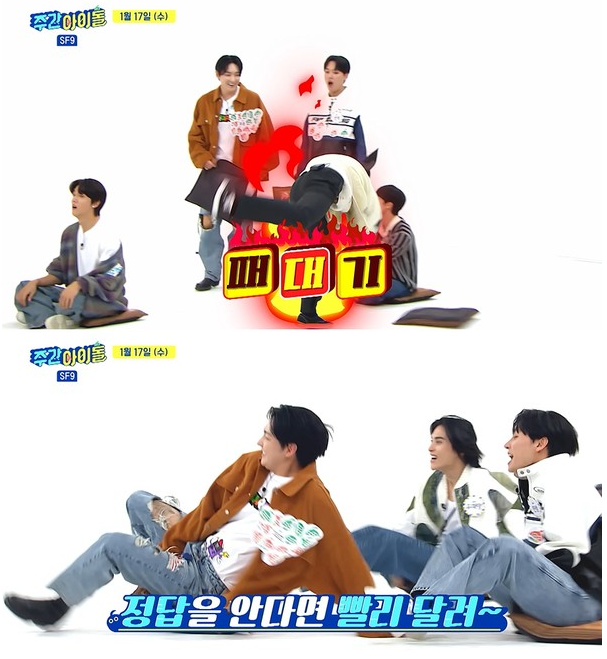 두 번째 게임 ‘방석 퀴즈’에서는 영빈의 화려한 과거 팩트 체크부터 인성의 충격적인 대학 시절 에피소드까지 알아볼 수 있는 SF9 맞춤 퀴즈가 진행된다. 특히 정답을 향한 주호와 다원의 치열한 공방전이 관전 포인트다. 주호의 방석 라이딩과 다원의 방석 패대기, 유태양의 노출 감행까지 볼 수 있다. 퀴즈로 시작해서 몸싸움으로 번진 ‘방석 퀴즈’의 승자는 과연 누구일지 귀추가 주목된다.