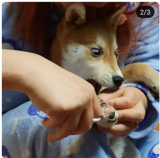 보호자가 자기 발톱을 자르자 기겁하는 시바견. / 네이트판