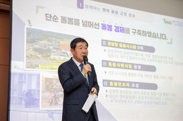 | ▲ 이재영 증평군수님 행복돌봄 시책 설명 모습 사진 |