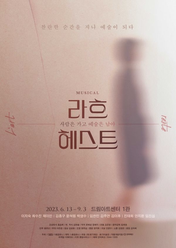 뮤지컬 <라흐 헤스트>는 위태로운 예술가와 열렬히 사랑하고, 쓰고, 그리는 삶을 지나 자신만의 예술을 향해 나아갔던 실존 인물 김향안(1916~2004)의 삶을 무대로 올렸다. ‘라흐 헤스트’는 김향안의 글 중 ‘사람은 가고 예술은 남다’(Les gens partent mais l'art reste)라는 구절에서 따왔다. 20세기 근현대 한국 문학의 대표 주자 이상 시인의 아내이자 한국 추상미술의 선구자 김환기 화백의 아내로 알려진 김향안의 이야기는 시인 ‘이상’을 만난 20살 시절의 ‘동림’(김향안의 본명)과 화가 ‘환기’를 만나 여생을 함께한 ‘향안’의 시간이 역순으로 교차하는 독특한 형식으로 재구성되어 보다 선명한 드라마로 그려졌다.