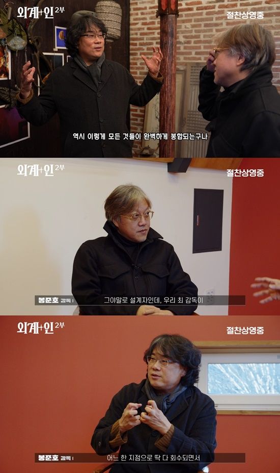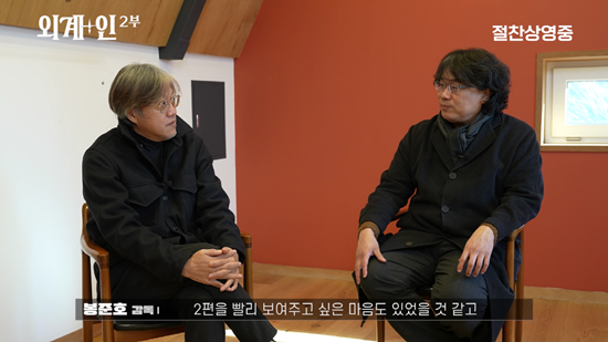 뿐만 아니라 봉준호 감독은 "2부를 보면 마침내 이 거대한 플롯의 기계 장치가 스위스 시계처럼 맞아 들어가는 쾌감이 상당하다", "1부에서 쫙 넓게 펼쳐졌던 모든 것들이 어느 한 지점으로 딱 회수되면서 하나의 장렬한 피날레를 보여주는 2부이기 때문에 극장에서 그 체험을 많이 했으면 좋겠다는 생각이 든다"고 전하면서 '외계+인' 2부가 선사하는 특별한 영화적 체험에 대한 소감을 전했다.