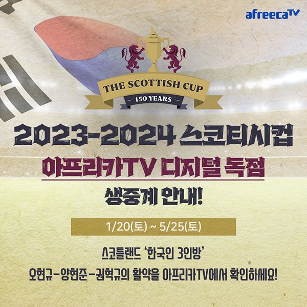 아프리카TV는 오는 20일(토)에 진행되는 스코티시컵 4라운드(32강) 경기부터 온라인 독점 생중계한다고 밝혔다. ‘스코티시컵’은 잉글랜드 FA컵과 더불어 세계에서 가장 오래된 대회 중 하나로 스코틀랜드 축구 협회에 등록된 모든 팀들이 참가해, 우승 시 유럽축구연맹(UEFA) 예선 참가 자격이 주어진다.