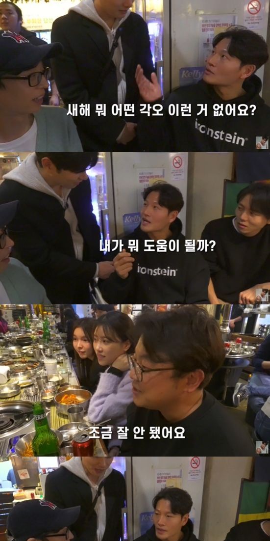 김종국은 하하와 동업한 고깃집에서 회식 중인 '놀면 뭐하니?'(이하 '놀뭐') 팀에 잠시 합류해 대화를 나눴다.
