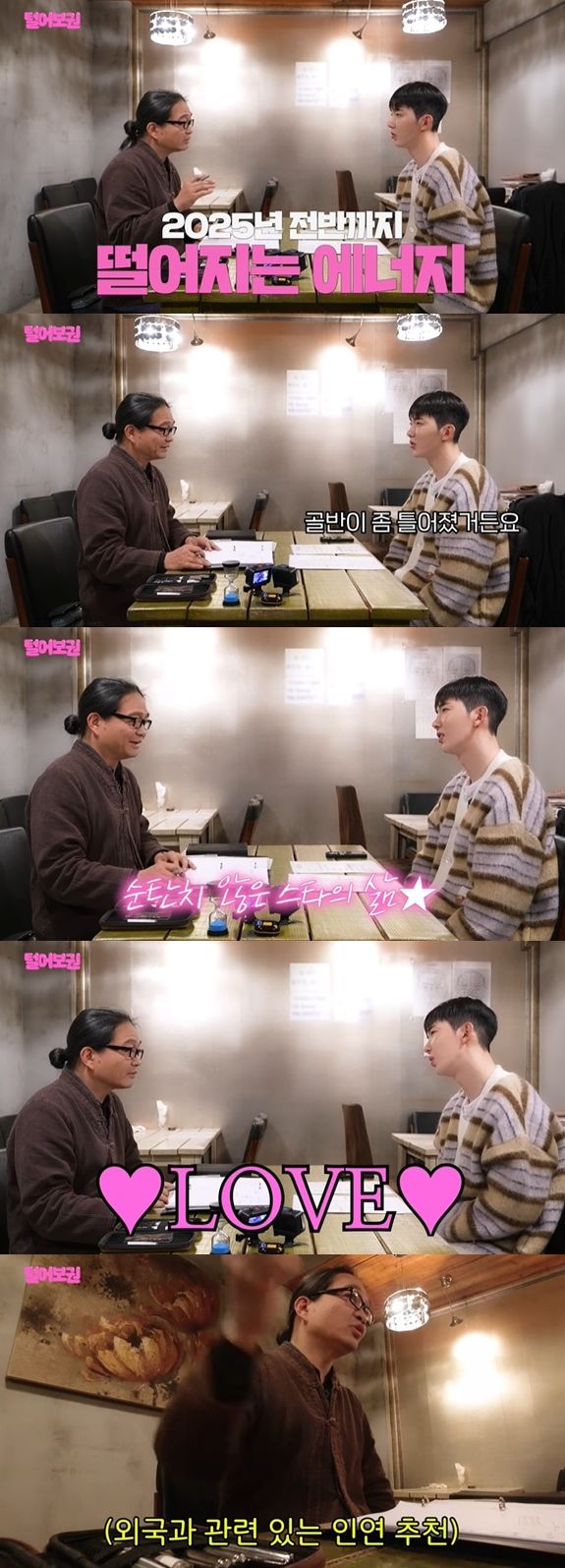 이어 전문가가 2025년 전반까지 에너지가 많이 떨어질 수 있으니 조심하라고 조언하자, 조권은 "골반이 너무 틀어졌다"고 토로해 웃음을 자아냈다.