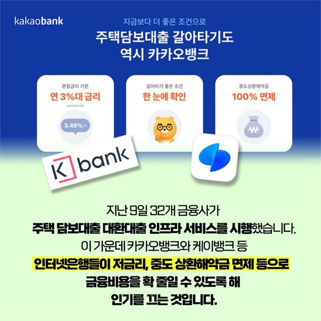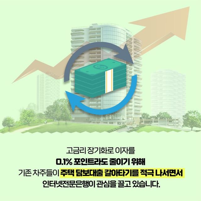 #카드뉴스 #주담대 #주택담보대출 #토스 #케이뱅크 #카카오뱅크 #인터넷뱅킹 #인터넷전문은행 #대출 #갈아타기 #은행 #뉴스 #이슈 #경제 #신문 #주주 #국민은행 #하나은행 #대환대출 #인프라 #중도상환수수료 #대출수수료 #수수료 #담보