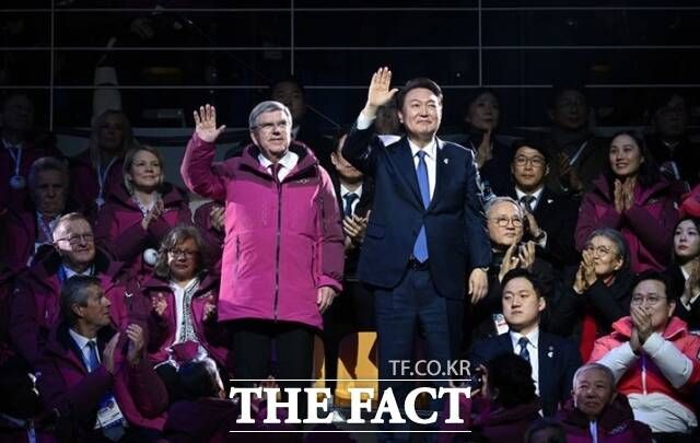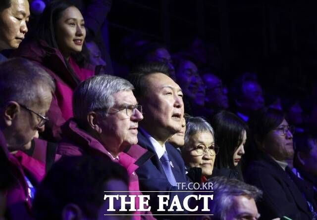 '2024 강원 동계청소년올림픽' 개회식에 참석한 윤석열 대통령과 토마스 바흐 IOC 위원장. /뉴시스