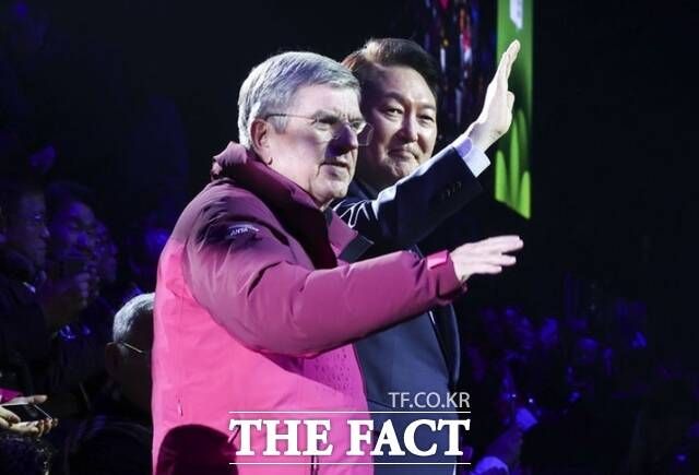 윤 대통령은 이날 오후 '2024 강원' 개회식에 앞서 강릉의 한 호텔에서 열린 IOC 사전 리셉션에 참석해 바흐 위원장을 비롯한 IOC 위원들을 만났다.윤 대통령은 바흐 위원장과의 사전 환담에서 "2024 강원 대회의 성공적 개최를 위해 노력하겠다"고 밝히고 2024 파리 올림픽 등에 관한 대화를 나눴다.