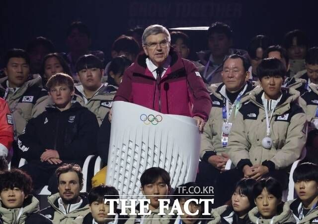 토마스 바흐 국제올림픽위원회(IOC) 위원장이 19일 오후 강원 강릉 스피드스케이팅 경기장에서 열린 '2024 강원 동계청소년올림픽' 개회식에서 연설하고 있다. /뉴시스