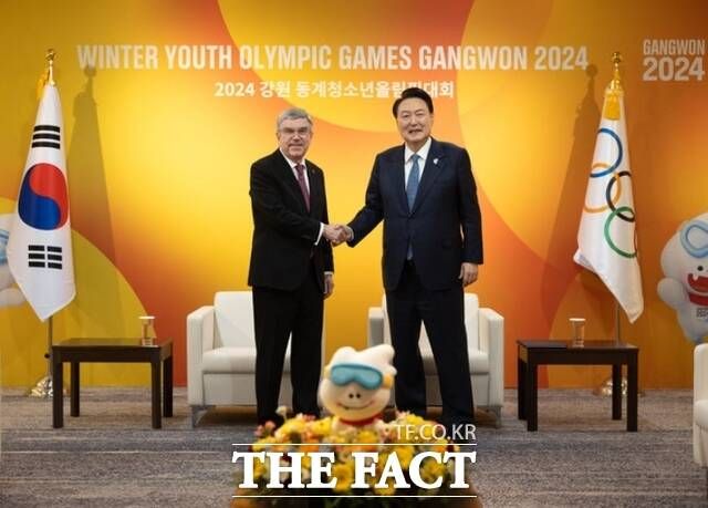[더팩트ㅣ이효균 기자] 윤석열 대통령이 19일 토마스 바흐 국제올림픽위원회(IOC) 위원장을 만나 '2024 강원 동계청소년올림픽(2024 강원)'의 성공적 개최를 기원했다.