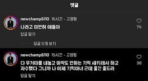 뉴챔프는 2024년 1월 20일 자신의 SNS에 "죄송합니다"라며 "제가 장난으로 쓴 댓글이 이런 파장을 일으킬 줄 몰랐다. 제가 너무 한심하고 통탄스럽다"고 사과문을 올려 많은 이들의 비판을 받았습니다.