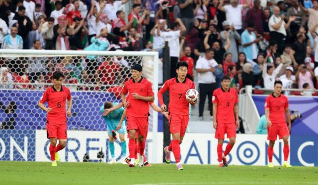 대한민국 축구대표팀이 지난 20일(현지시간) 카타르 도하 알투마마 스타디움에서 열린 2023 아시아축구연맹(AFC) 카타르 아시안컵 조별리그 E조 조별리그 2차전 요르단과 대한민국의 경기에서 박용우의 자책골로 동점골을 허용한 후 아쉬워하고 있다 / (도하(카타르)=뉴스1)