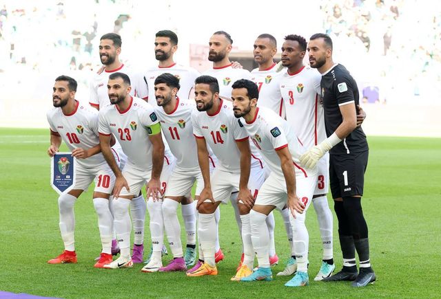 요르단 축구대표팀이 지난 20일(현지시간) 카타르 도하 알투마마 스타디움에서 열린 2023 아시아축구연맹(AFC) 카타르 아시안컵 조별리그 E조 조별리그 2차전 요르단과 대한민국의 경기에서 팀포토를 찍고 있다 / 뉴스1
