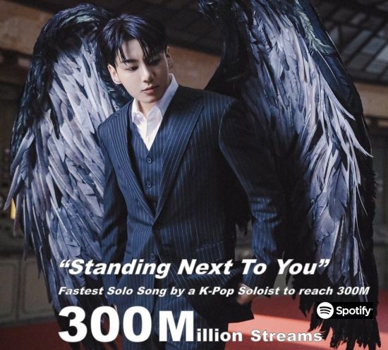 지난 2023년 11월 방탄소년단(BTS) 정국이 공개한 'Standing Next to You'(스탠딩 넥스트 투 유)는 최근 세계 최대 음원 스트리밍 플랫폼 스포티파이에서 3억 스트리밍을 넘어섰다.