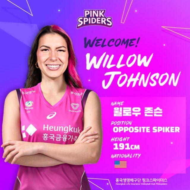 흥국생명은 22일 “지난 두 시즌 동안 동행한 엘레나 므라제노비치와의 계약을 마무리하고, 미국의 프로리그 애슬레틱 언리미티드에서 활약 중인 미국 국적의 윌로우 존슨과 영입 계약을 체결했다”라고 발표했다. 윌로우는 2020년 오리건 주립대학교를 졸업한 뒤 2020~21시즌 튀르키예 뉠르페르 벨레디에스포를 거쳐 최근에는 미국 프로리그에서 아포짓 스파이커(라이트)로 뛰었다.윌로우는 메이저리그(MLB) 명예의 전당에 입회한 레전드 투수 랜디 존슨의 딸로 세간의 관심을 끈 바 있다. 지난해 5월 열린 트라이아웃에서도 1m 91㎝의 큰 신장을 이용한 타점 높은 공격과 블로킹으로 강한 인상을 남겼다.