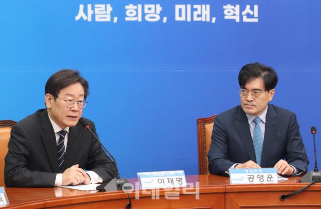 이 대표는 공 전 사장에 대해 “경제 현장에서 큰 성과를 현실적으로 만들어낸 분”이라며 “민주당 정책과 입법에 많은 역할을 할 수 있도록 해야한다고 생각한다”고 말했다. 이어 “글로벌 기업이 겪는 어려움은 RE100 확산으로 인한 재생에너지 확보 문제”라며 “우리는 선진국 중 압도적 꼴찌다. 현 정부는 재생에너지 비중을 줄이는 방향으로 역행 중”이라고 꼬집었다.