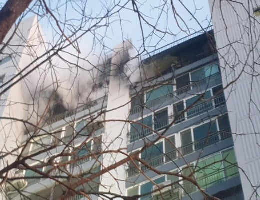 23일 오전 5시12분께 경북 포항시 북구 용흥동의 한 15층짜리 아파트 꼭대기 층에서 화재가 발생했다.