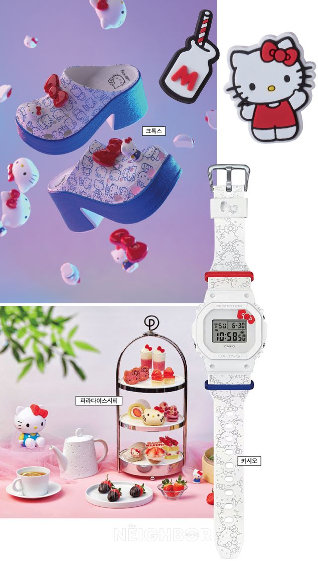 크록스는 헬로키티의 컬러, 리본 등을 모티프로 디자인한 컬렉션을 출시한다. 헬로키티를 압축해놓은 듯한 클래식 클로그와 빨간 굽의 슬라이드, 굽이 높은 클로그로 구성했다. 각 제품에는 헬로키티를 상징하는 빨간 리본 모양 지비츠 참을 장식했으며, 별도로 구매 가능한 지비츠 참 세트까지 구성했다.