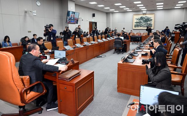 23일 국회에서 열린 운영위원회 전체회의에서 윤재옥 위원장이 의사봉을 두드리고 있다. 더불어민주당을 비롯한 야4당은 대통령이 참석한 행사에서 강성희 진보당 의원을 강제퇴장 조치한 것과 관련해 현안 질의를 할 계획이었으나 여당 의원들은 참석하지 않아 파행됐다. /송의주 기자