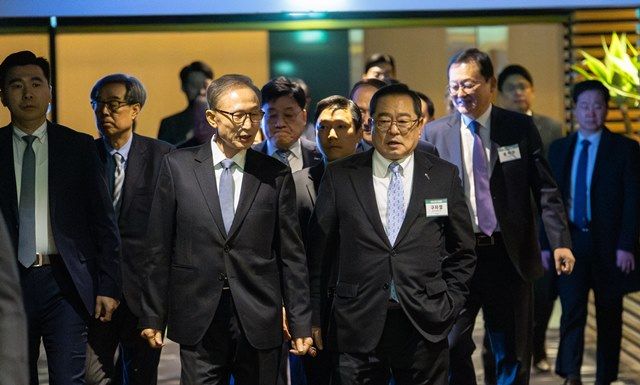 이 전 대통령은 "지난해 복합 경제 위기와 수요 침체 장기화 등 어려운 환경에서도 3년 연속 무역 1조 불을 달성하고 세계 8위 수출 강국 위상을 지켜냈다"며 "새해에도 기업인들이 지속 가능한 미래 준비를 위한 인재와 기술 확보, 투자에 적극 나서달라"고 강조했다.