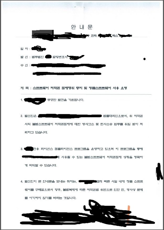 본사에서 이런 불법 프로그램 사용자를 잡겠다고 결심하는 순간 위 내용과 같은 통보문이 날아온다고 합니다. 다들 합당한 대가를 내고 사용합시다!