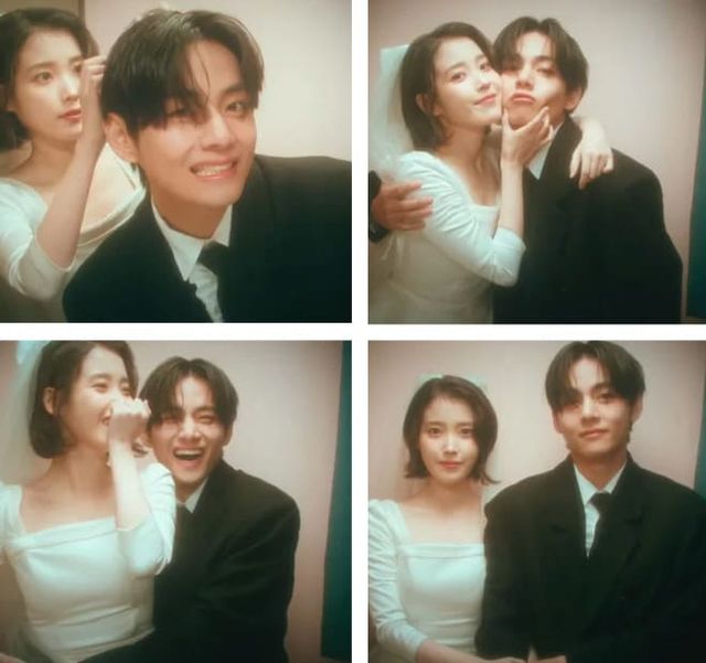 영상 속 아이유는 웨딩드레스를 입었고 남자 주인공으로 출연한 뷔는 턱시도를 입고 있습니다. 두 사람은 일명 '웨딩네컷'을 찍어 감탄을 자아냈습니다.