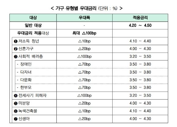 취약계층과 전세 사기 피해자는 2025년까지 중도상환수수료도 면제해 준다. 일반대상은 시중은행의 절반인 0.7%를 적용한다.