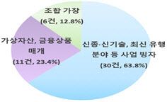 유형별로 보면 47건 중 30건(63.8%)은 신재생 에너지 등 신종·신기술 분야, 건강·친환경 등 최신 유행 분야의 사업을 빙자한 경우였다. 유명인을 내세운 TV광고나 경제학 박사 등을 사칭한 ‘배우’를 등장시킨 유튜브 등 SNS 광고를 통해 가짜 투자 성공 사례로 투자자를 현혹하는 식이다. 실제 전문 업체 명의를 도용하고, 특허증 등을 위조하거나 공신력 있는 공공기관과 협약을 맺은 기업이라며 투자자를 안심시키기도 한다.