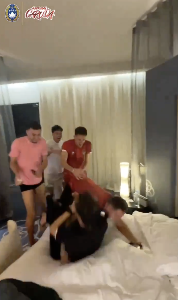 오만과 키르기스스탄 경기를 숙소에서 지켜보던 인도네시아 대표팀은 경기 종료 휘슬이 울리자마자 광란에 휩싸였다. 한 선수는 침대 위에서 자신이 들고 있던 물병을 세차게 흔들며 물을 흩뿌렸고, 너 나 할 것 없이 얼싸안고 환호를 내질렀다.