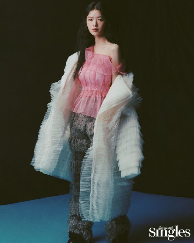 화보 속 노정의는 아방가르드한 의상을 입고 활짝 핀 꽃과 어우러진 모습으로 청순하면서도 몽환적 비주얼을 선보였으며, 지금껏 보지 못했던 새로운 매력을 드러냈다.