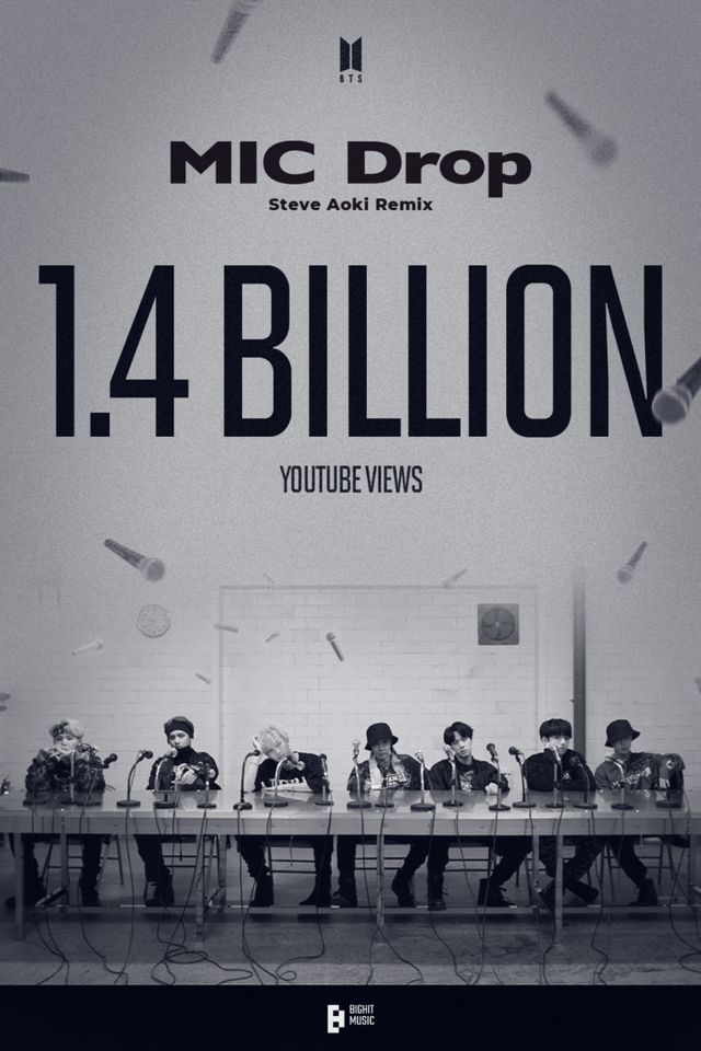 지난 2017년 11월 24일 하이브 레이블즈 공식 유튜브 채널에 공개된 방탄소년단의 ‘MIC Drop (Steve Aoki Remix)’ 뮤직비디오 조회수가 26일 오전 12시 56분경 14억 건을 넘었다. 방탄소년단 통산 4번째 14억 뷰 뮤직비디오다.