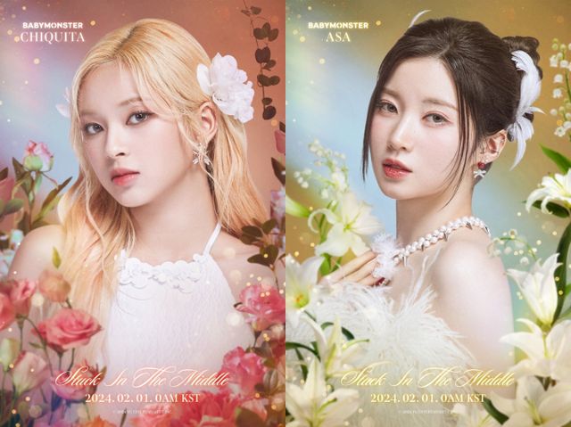 YG엔터테인먼트는 27일 공식 블로그에 베이비몬스터 아사, 치키타의 '스턱 인 더 미들'(Stuck In The Middle) 캐릭터 포스터를 연달아 게재했다. 두 번째 신곡의 음악 세계를 표현하는 이미지다.