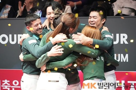 이어진 5세트(남자단식)는 초클루와 강동궁의 대결. 초클루는 3이닝 째 4:1로 앞서며 경기 초반 분위기를 가져왔다. 4이닝 째 선공에선 강동궁이 4득점으로 응수했으나 공격권을 이어받은 초클루가 하이런6점을 터뜨려 단숨에 10:5 매치포인트에 도달했다. 5이닝 째엔 ‘선공’ 강동궁의 공격이 실패로 돌아갔고, 초클루가 후공서 남은 1점을 채우며 팀에 우승컵을 안겼다. [김동우 MK빌리어드뉴스 기자]
