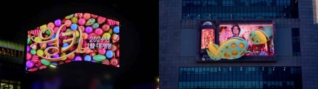 서울 도심을 달콤하게 물들이고 있는 ‘웡카’의 3D 아나몰픽 광고도 사람들의 발길을 붙잡으며 많은 관심을 불러모으고 있다. 스윗하게 인사를 건네는 웡카와 그의 모자 속에서 갓 튀어나온 마법의 초콜릿 ‘두둥실 초코’가 바로 눈앞에 있는 것처럼 생생하게 구현돼 놀라움을 자아낸다. ‘웡카’의 화려한 비주얼과 아름다운 영상미를 엿볼 수 있는 3D 아나몰픽 광고는 삼성역 KPOP스퀘어, 을지로 MN-LIVE와 ME-LIVE에서 오는 31일까지, 강남역 씨티빌딩에서 다음 달 4일까지 만날 수 있다.