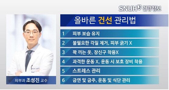 서울대병원 피부과 조성진 교수는 “잘 조절된 건선도 치료를 중단하거나 여러 외부 요인에 의해 재발 혹은 악화될 수 있기 때문에 평소 올바른 건선 관리 습관을 가지는 것이 필요하다”고 말했다.