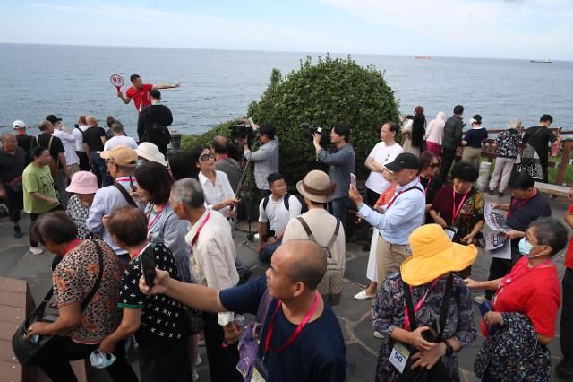 中国旅行团在济州岛龙头岩观光。【图片提供 韩联社】