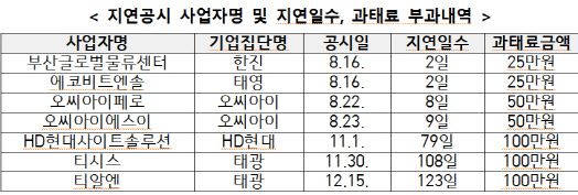 공정위는 지연공시한 7개 사업자에 대해서는 각각 과태료(25만~100만원)를 부과했다. 또한 공정위는 공시내용 중 단순 누락·오기가 발견된 95개 사업자에 대해서는 정정공시토록 해 기업들의 공시항목 등에 대한 이해도를 높이고 향후에는 정확한 내용으로 공시되도록 안내했다.