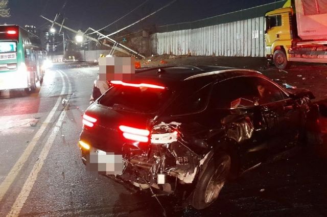 A씨는 소방대원에 “차량을 몰고 직진하던 중 반대편 차선에서 좌회전하던 승용차와 부딪혔다”며 “1차 사고 후 차량이 급가속해 전신주를 충돌했다”고 밝혔다.