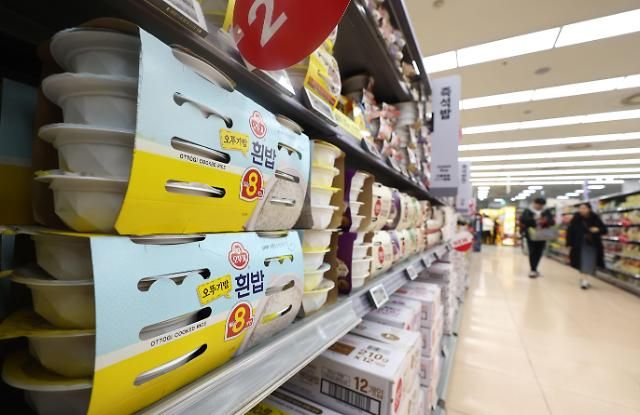 首尔某大型超市陈列销售的速食米饭。【图片提供 韩联社】