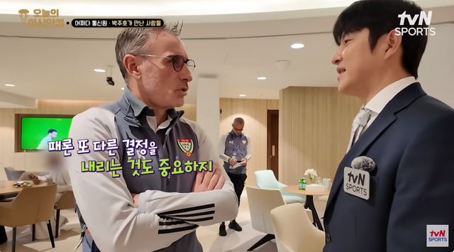 "가족들은 한국에 있고, 저는 해설위원으로 왔다"는 박주호 말에 벤투 감독은 "알고 있다. 세르지우(전 수석코치)에게 해설하러 왔다고 들었다. 그리고 작년에 은퇴를 한 것도 알고 있다. 별다른 문제 없지?"라며 따뜻한 말을 건넸다.