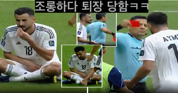 알고보니 셀레브레이션을 확인한 주심, 이라크의 셀레브레이션이 상대팀과 관중을 자극시키는 의미(손으로 밥을 먹는 요르단인 조롱)를 가지고 있다며 경고를 줬는데…
