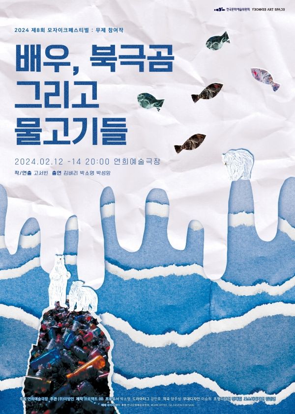 제8회 모자이크페스티벌에서 선보인 연극 <배우, 북극곰 그리고 물고기들>이 오는 2월 12일(월)부터 2월 14일(수)까지 연희예술극장에서 막을 올린다.