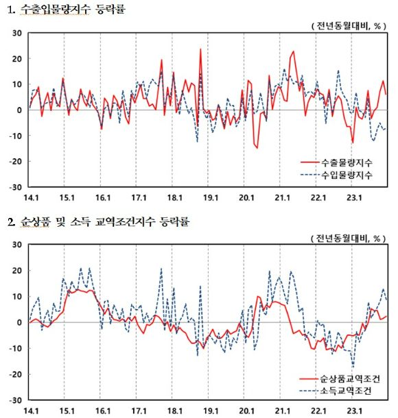 지난해 전체 수출 물량지수는 123.51로 전년보다 0.6% 상승하며 2020년(1.1%)부터 4년 연속 상승세를 보였다. 지난해 수입 물량지수는 124.83으로 전년보다 3.8% 하락하며 2019년 이후 4년 만에 하락했다.