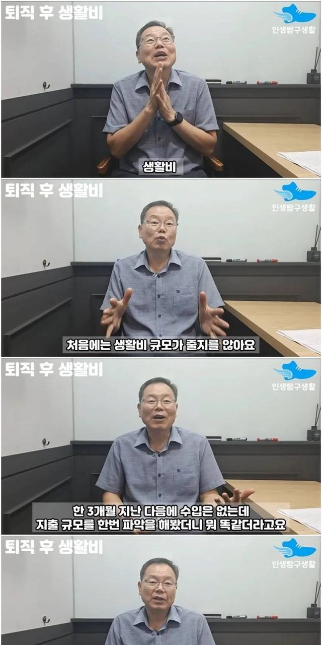 또 "매월 정기적으로 들어오는 소득이 없으면 일단 생활하기가 굉장히 난감하다. 퇴직 후 초기엔 생활비 규모를 줄이지 않았다. 저도 한 3개월간은 열심히 놀았다"고 밝혔다.